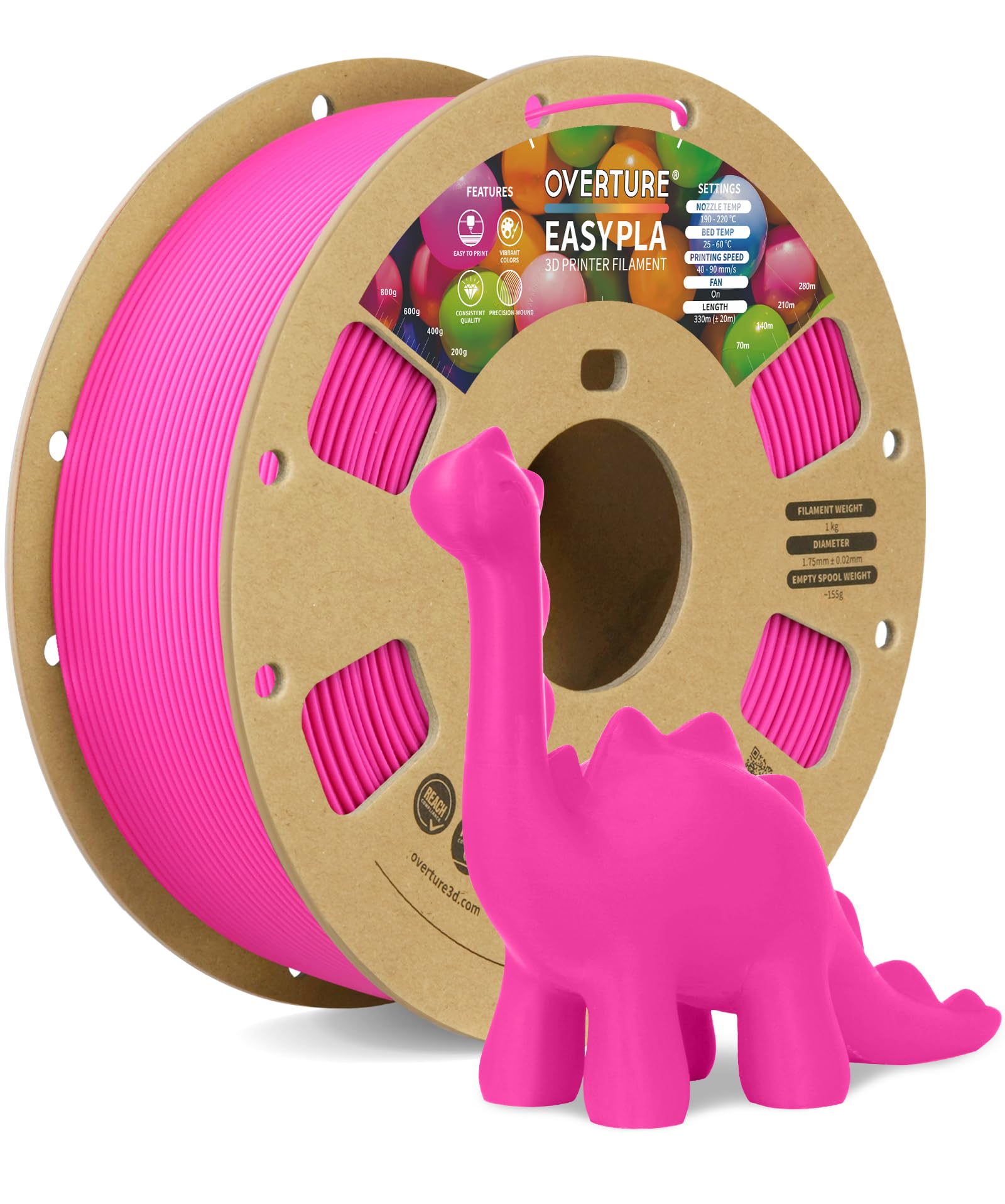 OVERTURE PLA フィラメント Easy PLA フィラメント 3Dプリンター用素材 3D印刷 3Dプリンター フィラメント 1.75mm 1kgスプール 高い寸法精度+/- 0.03mm 高密度 ほとんどのFDMプリンターに適合 (Easy Mag) レビュー